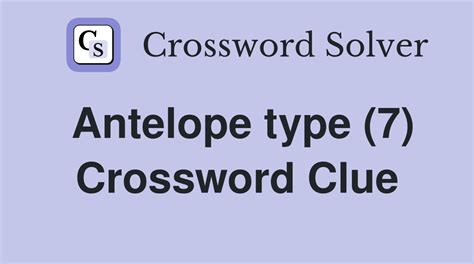 Antelope Type Crossword. Our system collect crossword clues from most populer crossword, cryptic puzzle,. Type of antelope is a crossword puzzle clue that we have spotted 10 times.