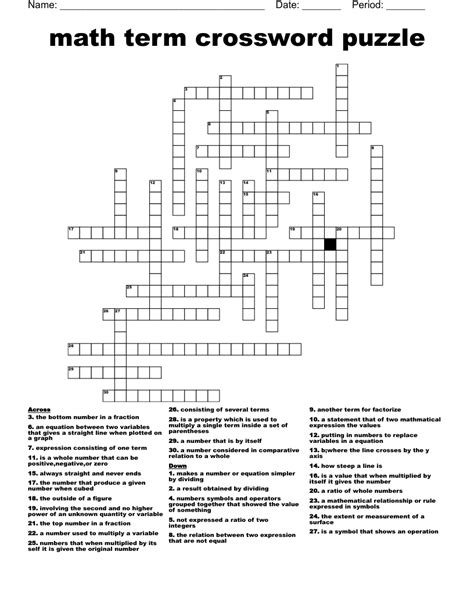 Math Terms Crossword Puzzle WordMint