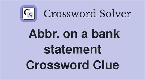 Bank Statement Abbr Crossword. There are related clues (shown below). Web bank statement abbr ny times crossword clue answer.