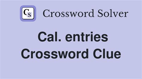 Cal Entry Crossword. Entry with 3 letters was last seen on the march 17, 2021. Search for crossword answers and clues.