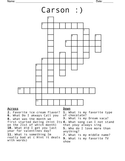 Carsons Crossword Puzzle WordMint