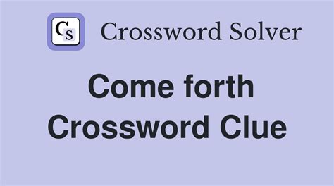 Come Forth Crossword. Find clues for come forth (6) or most any crossword answer or clues for crossword answers. There are related clues (shown below).