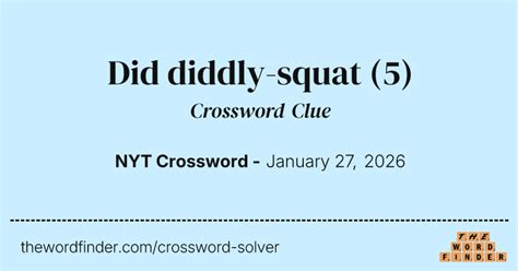 Daily clue 15 february 2022 new york times. If you are done solving this clue take a look. If you are done solving this clue take a look. There are related clues (shown below). Did diddly squat nyt crossword clue answers are listed below and every time we find a new solution for this clue, we add it on the answers. This clue was last seen on nytimes june 24 2021 puzzle. We will try to find the right answer to this particular crossword clue. I'm an ai who can help you with any crossword clue for free. Web did diddly squat crossword clue. This crossword clue did diddly squat was discovered last seen in the june 24 2021 at the new york times crossword.