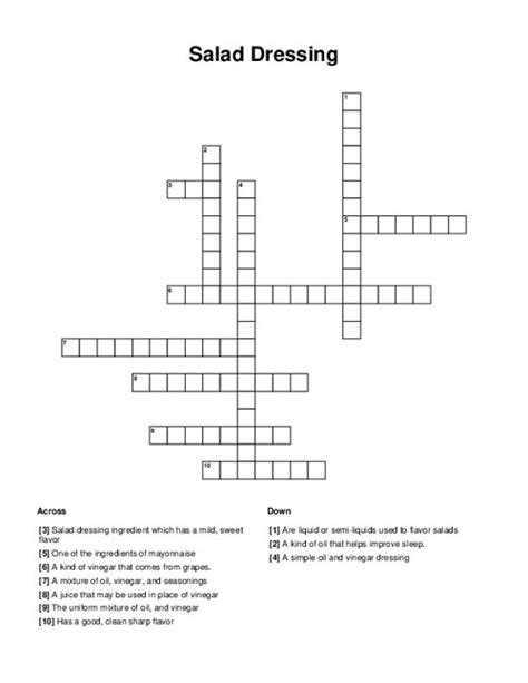 Web salad dressing base is a crossword puzzle clue. Are you looking for more answers, or do you have a question for other crossword enthusiasts? Web today's crossword puzzle clue is a quick one: We will try to find the right answer to this particular crossword clue. Referring crossword puzzle answers oil saladoil likely. Web dressing base crossword clue. Web dressing base today's crossword puzzle clue is a quick one: Here are the possible solutions. Web here is the answer to dressing base crossword clue based on our algorithms and database. We found 20 possible solutions for this clue. Web dressing base crossword clue vinegar.