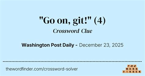 While searching our database we found 1 possible solution for the: This crossword clue was last seen on september 24 2022 la times. Web go on, git! is a crossword puzzle clue that we have spotted 5 times. Web the solution to the go on git! Web on this page you will find the solution to go on crossword clue. Web the crossword solver found 30 answers to go on, git!, 5 letters crossword clue. There are related clues (shown below). Here are the possible solutions for. Go on, git! usage examples of shoo. Somehow she manages to wiggle through the crowd of harvards around the posts, and the next thing anybody.