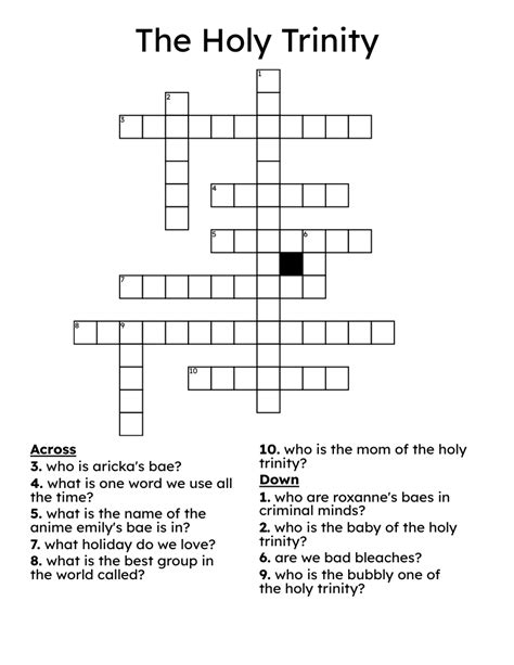Holy Trinity Crossword. Search for crossword clues found in the daily celebrity, ny times, daily mirror, telegraph and major publications. The holy spirit is not the _____ person as the son.