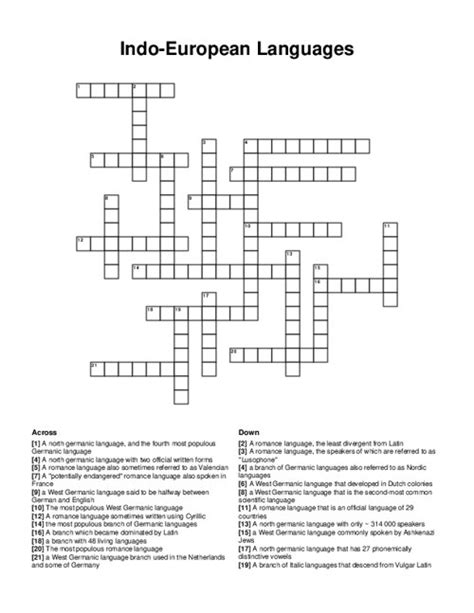 Indo- Languages Crossword. With 8 letters was last seen on the january 01, 1948. Are you looking for more answers, or do you have a question for other crossword enthusiasts?