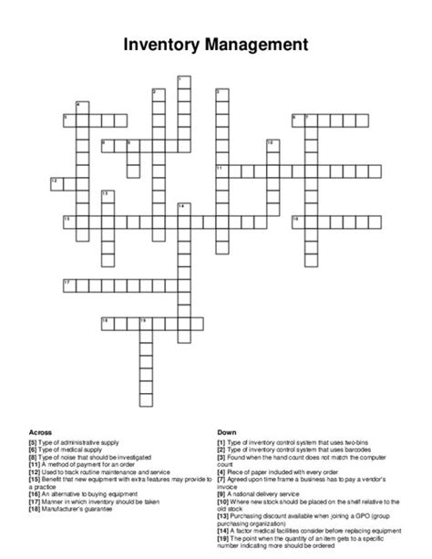 Inventory Unit Crossword. There are related clues (shown below). Web searching our database for:
