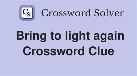 Light Again Crossword. We will try to find the right answer to this particular crossword clue. A further 2 clues may be related.