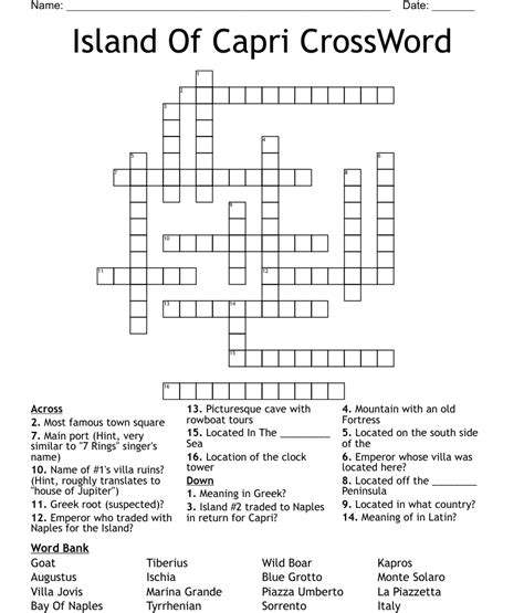 Of Capri Crossword. Web we found one answer for “capri”. Web of capri nyt crossword clue answers are listed below and every time we find a new solution for this clue, we add it on the answers list down below.
