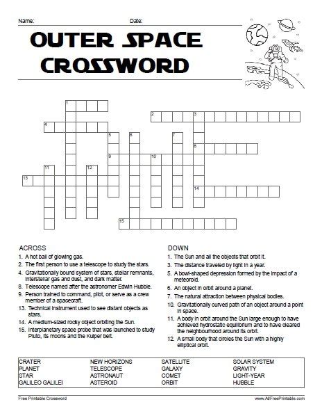 Web the crossword clue outer space.with 5 letters was last seen on the january 01, 1964. Our system collect crossword clues from most populer crossword, cryptic puzzle,. We found 20 possible solutions for this clue. Web outer space crossword teaching resources | tpt browse outer space crossword resources on teachers pay teachers, a marketplace trusted by millions of teachers for. Teaching with the dollhouse collector. There are related clues (shown below). Web please find below the visitors from outer space: Web the crossword clue outer space. We think the likely answer to this clue is ether. Below are all possible answers to this clue. The crossword solver finds answers to classic crosswords and cryptic crossword puzzles.