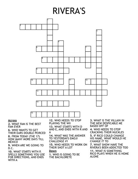 Painter Rivera Crossword. We've listed any clues from our database that match your search for mural painter rivera. Web painter rivera crossword clue we found 1 possible answer matching your crossword clue:
