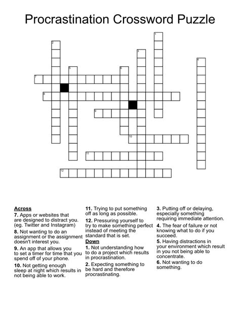 Procrastination Crossword Clue. Web this crossword clue procrastinate was discovered last seen in the january 31 2021 at the new york times crossword. The crossword clue possible answer is.