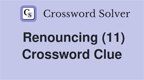 Renouncing Crossword Clue. This page shows answers to the clue renounce, followed by 4 definitions like “ act of renouncing. We found 20 possible solutions for this clue.