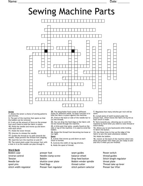 Sewing Machine Part Crossword. This crossword clue was last. (enter a dot for each.