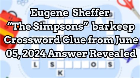 There are related clues (shown below). We found 20 possible solutions for this clue. We think the likely answer to this clue is. Web the crossword clue possible answer is available in 3 letters. Please find below the the simpsons bartender crossword clue answer and solution which is part of daily. With 3 letters was last seen on the january 01, 2013. This answer has 3 letters that will help solve your. This crossword clue homer simpson's barkeep was discovered last seen in the january 12 2023 at the eugene sheffer. Web barkeep on the simpsons is a crossword puzzle clue that we have spotted 2 times. We found 20 possible solutions for.