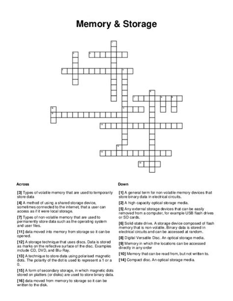 Storage Medium Crossword. Web answers for storage medium for crossword clue, 9 letters. With 5 letters was last seen on the december 14, 2022.