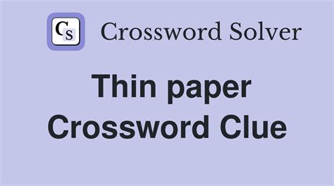Thin Paper Crossword. Here are the possible solutions for. Thin (4) soft fruit (9) soft drink (8) quantity of paper (4) soft thin paper ruined suites (6)