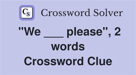 We Please Crossword. We ___ please crossword clue. Web ''we ___ please'' is a crossword puzzle clue that we have spotted 2 times.
