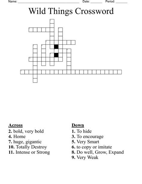 Wild Things Crossword. Web the crossword solver found 30 answers to wild things, 7 letters crossword clue. Web this crossword clue wilde thing was discovered last seen in the march 25 2023 at the new york times crossword.